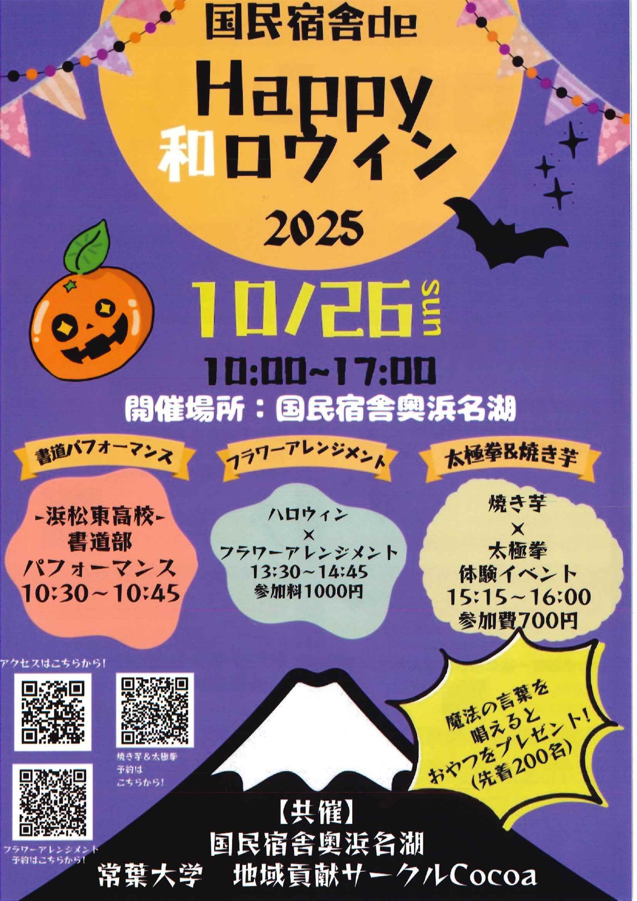 ホーム 国民宿舎奥浜名湖のイベント イベント 2025年10月26日(日) 2025年10月26日(日)は国民宿舎deHappy和ロウィン 詳細をみる イベント 2025年11月15日(土) 太極拳体験 2025年11月15日(土) 詳細をみる イベント一覧 お知らせ 2025年9月7日 令和7年12月1日よりすっぽん会席始まります。 2025年9月6日 松茸宿泊プラン始まります! 2025年6月5日 年末年始の宿泊予約受付方法が変更になります。 2025年5月29日 55周年記念プラン第一弾 始まります。 2025年5月27日 令和7年6月休館日のお知らせ お知らせ一覧 おすすめ宿泊プラン 奥浜名湖会席プラン 奥浜名湖を代表とする素材を集めた『奥浜名湖会席』の宿泊プランです。 13,640 円~ みをつくし会席プラン 当館のスタンダードなプランです。 12,540 円~ 1泊朝食プラン 1泊朝食プランです。 8,800 円~ 平日限定1泊3食のんびり宿泊プラン 平日限定の1泊3食付きのお得な宿泊プランです。滞在時間も長く翌日は12時チェックアウト。親しい仲間やご家族とゆったりとお過しください。 11,990円~ 館内ご案内 浜名湖県立自然公園内にある当施設では 四季折々の趣のある環境でおもてなし致します。 お風呂 レストラン 和室 ロビー 洋室 デッキ 和洋室(サニタリールーム付) 観光情報 悠久の歴史が残る奥浜名湖ロマン 数々の重要文化財などが点在している浜松でタイムスリップ体験してみませんか。